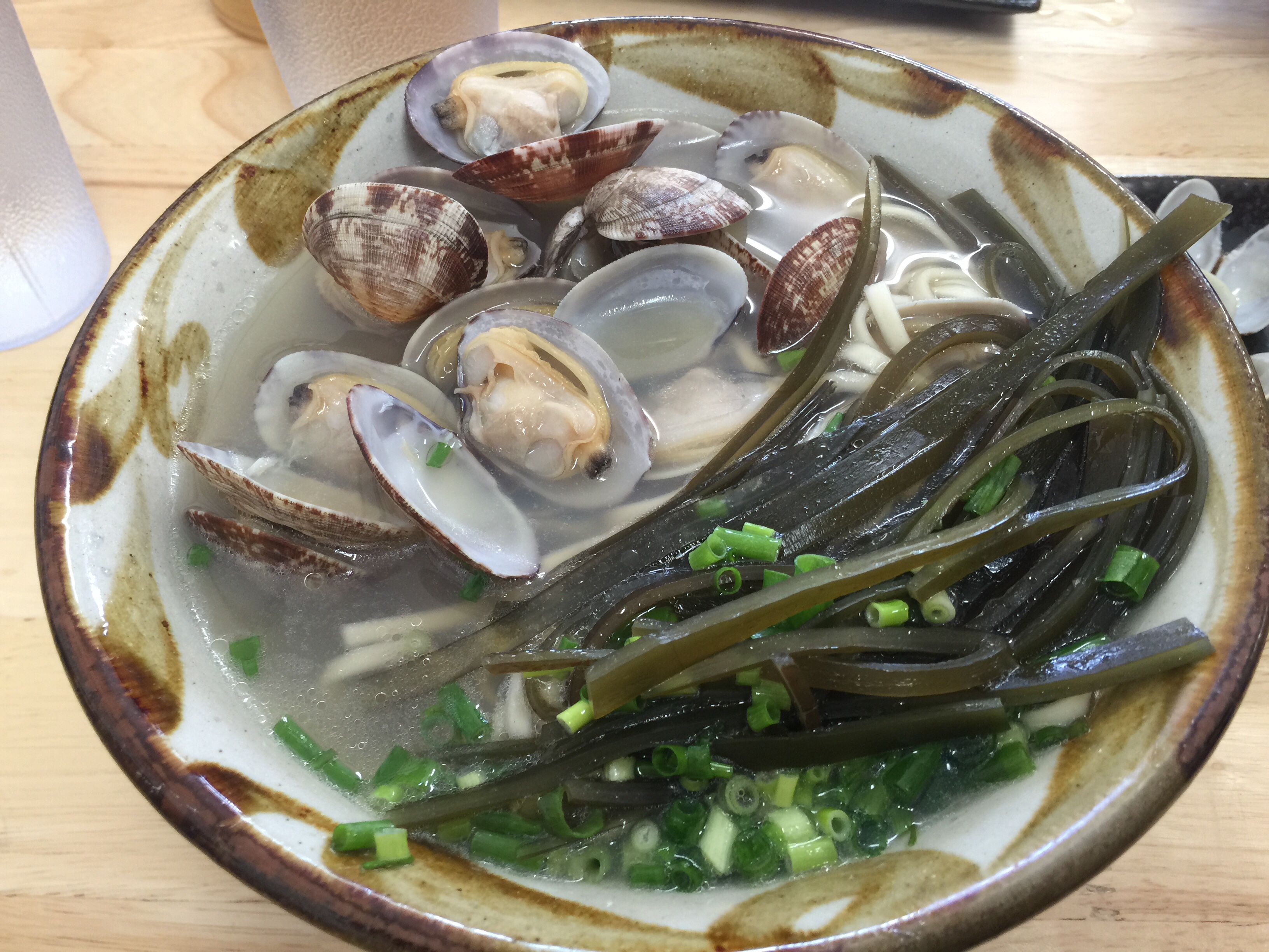 A bowl of soba with topping of steamed crams and sliced kelp. This sea-flavor soba has been my favorite soba but it’s not on the menu anymore. Their regular soba with pork toppings is very tasty, too.